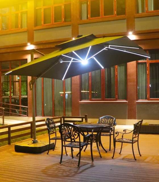 Dù lệch tâm vuông có đèn dùng để trang trí sân vườn bạn có thể xoay và điều chỉnh mọi hướng, nấc xoay 360 độ giúp bạn dễ dàng điều chính theo hướng nắng một cách thoải mãi và mang đến khả năng che nắng hoàn hỏa nhất, bạn có thể điều chỉnh ô nghiêng theo ý muốn mà không cân mất thời gian để dịch chuyển cả chân đế của ô